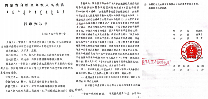 本站讯 “我只是为嘎查守护权属明确的草场,怎么就成了罪犯?”2025年12月16日,内蒙古呼伦贝尔市新巴尔虎左旗甘珠尔嘎查原嘎查达侯志平,手持两份边界重叠却均被政府认可的草原所有权证,声音沙哑却目光坚定。他介绍说:这场始于2019年的草场纠纷,本是行政确权混乱埋下的隐患,却在旗领导主持的协调会后,演变为针对牧民村官的刑事追诉。五年间,一审、发回重审、二审的司法轮回中,“双证并行”的权属迷局与“会议定调”的司法乱象交织,不仅让侯志平身陷冤屈,更直指权力干预司法、行政确权失范的深层症结。