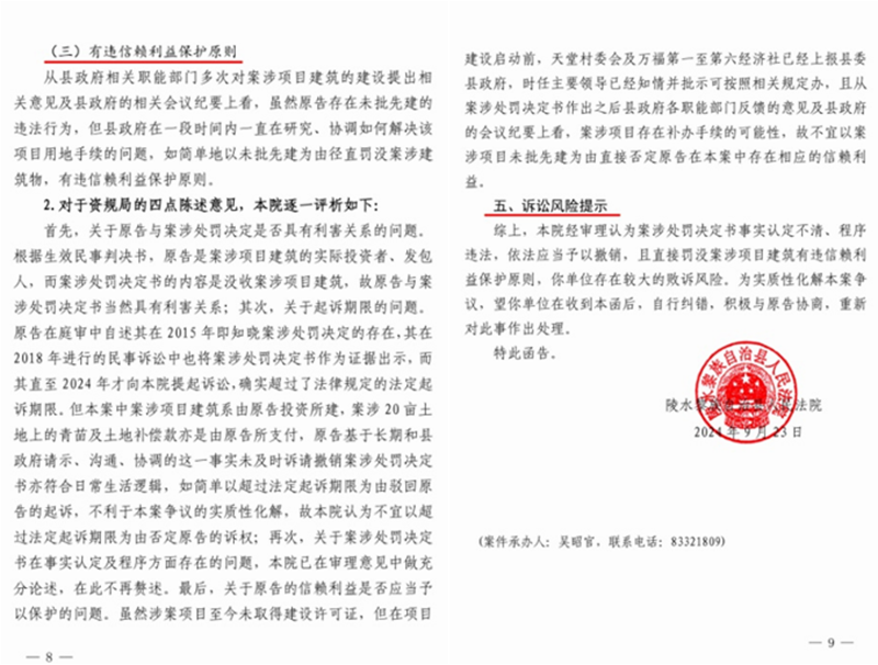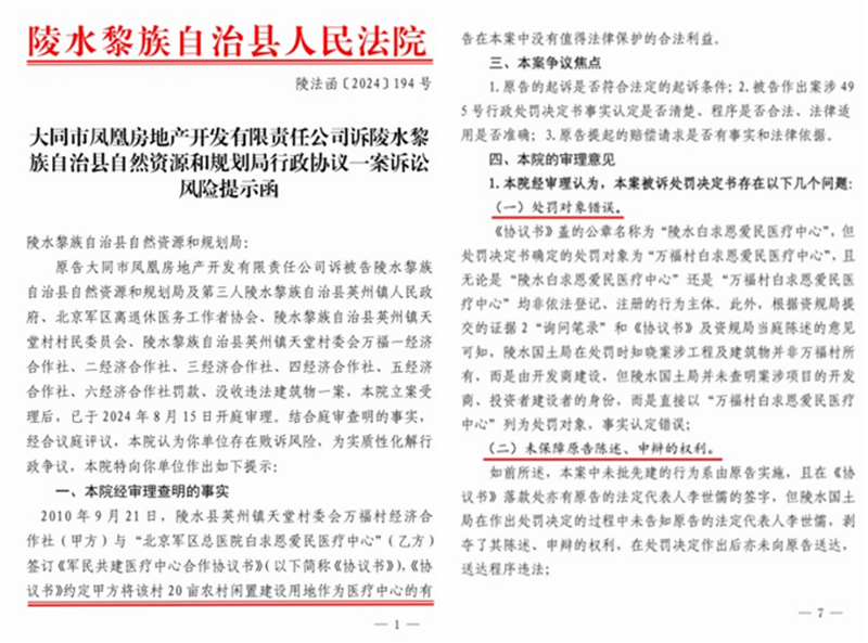 作为军民共建项目,此项目很快获得时任陵水黎族自治县主要领导“同意按有关规定办”的批示,并要求各部门大力支持。我深信这是一片投资的沃土,政府是我坚实的后盾,于是我拿出了全部积蓄,先后投入超过2亿元,在陵水县英州镇建起了建筑面积达4.3万平方米、由6幢建筑组成的高标准“白求恩医院”,项目于2016年完工,至今已矗立近十年。这期间,我公司是该项目唯一实际投资人、管理人和权利人,承担着所有建设费用。我憧憬着为当地百姓谋福祉、为企业谋发展的愿景,却未曾料到,这竟然是一场令人心悸的噩梦。 二、因相信政府一言九鼎埋下祸根 项目建设初期,为加快推进速度,时任陵水县主要领导让我方采取了“先上车后买票”(先开工后办手续)的简化流程,言之凿凿地承诺后续会完善手续。可做梦也没想到的是,2013年,国土资源部南方分局在专项巡查陵水县“未批先建”问题时,原陵水黎族自治县国土资源局,突然于2013年8月27日,给我方下达了一份“陵土环资(2013)495号【行政处罚决定书】,说我方在建项目工程属违规、违建行为,并处以没收在建项目所有建筑物及设施,附加罚金428994万元(我方已交清)。 我方收到“陵土环资(2013)495号【行政处罚决定书】”后,便在第一时间去找政府主要领导进行交涉,时任陵水县主要领导明确告知我方说:“这是个为当地老百姓解决就医难,惠及民生的好项目,不会真罚没,赶快把医院建起来……”有了领导的明确答复,我方如同吃了定心丸,对在建项目充满了继续投入的信心。 此后,从2013年开始,在政府分管副县长的主导下,几年来召开多次联席办公会议商讨解决方案(详见陵水县国土、卫生、发改、住建等部门批文)。2016年,陵水县英州镇政府还出台了一套“托管”方案(详见陵水县政府【2016】103号文件、各部门批文、会议纪要等)。可见,当时政府是大力支持和认可我方在建项目的,并试图通过各种方式完善手续,解决历史遗留问题。这些事实足以证明,当年陵水县政府部门出台的那份“罚没”决定书,正如当时领导所言,是假“罚没”,是为应对上级检查的权宜之计。因此,我方才敢继续加大投资,直至完成全部工程建设。 三、法院文书居然在强权面前成了笑料 为了彻底解决这个困扰十四年的历史遗留问题,2024年5月,我方依法向陵水县法院提起诉讼,请求撤销那份荒谬的〔2013〕495号《行政处罚决定书》。